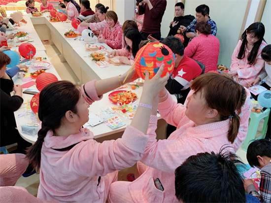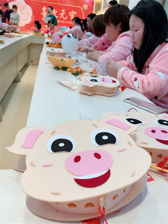2月18日下午,济南红绘医院(红会福娃娃)热闹非凡,几十名患者、患者家属以及工作人员齐聚活动现场,大家都被温馨的现场气氛带动,脸上洋溢着微笑。元宵节当然少不了花灯,为让大家度过更有意义的元宵节,医院的工作人员为大家准备了制作花灯的素材,让大家充分发挥自己的个性创意动手制作花灯。大家跃跃欲试,仔细挑选心仪的花灯颜色,然后开始发挥天马行空的想象动手制作了。花灯以小猪的形象为基础,有着猪年美好吉祥的寓意。有的自行发挥创意,在花灯上写下了“家庭幸福美满”的祝愿,有的则画上了几颗爱心让一盏小小的花灯看起来充满了爱。
