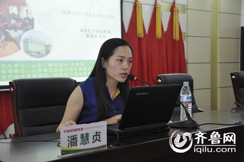 2016年1月19日上午,山东广播电视台齐鲁网与东阿县计生办共同举办的健康山东行科学备孕公益讲座在潍坊峡山区郑公街道办举行,山东红十字会医院专家潘慧贞主任讲解健康备孕和生殖健康知识。