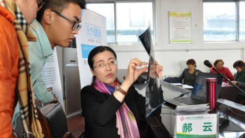 - 潘慧贞主任在向鱼山镇的村民传播关于不孕不育的知识